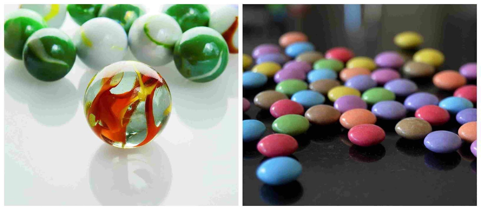 लड़के के पास चमकीले और सुन्दर मार्बल्स का संग्रह था. लड़की के पास कुछ मिठाइयां थी.